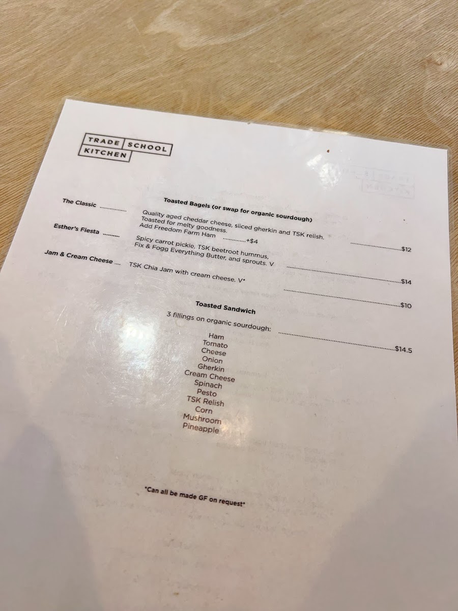 Trade School Kitchen Menu